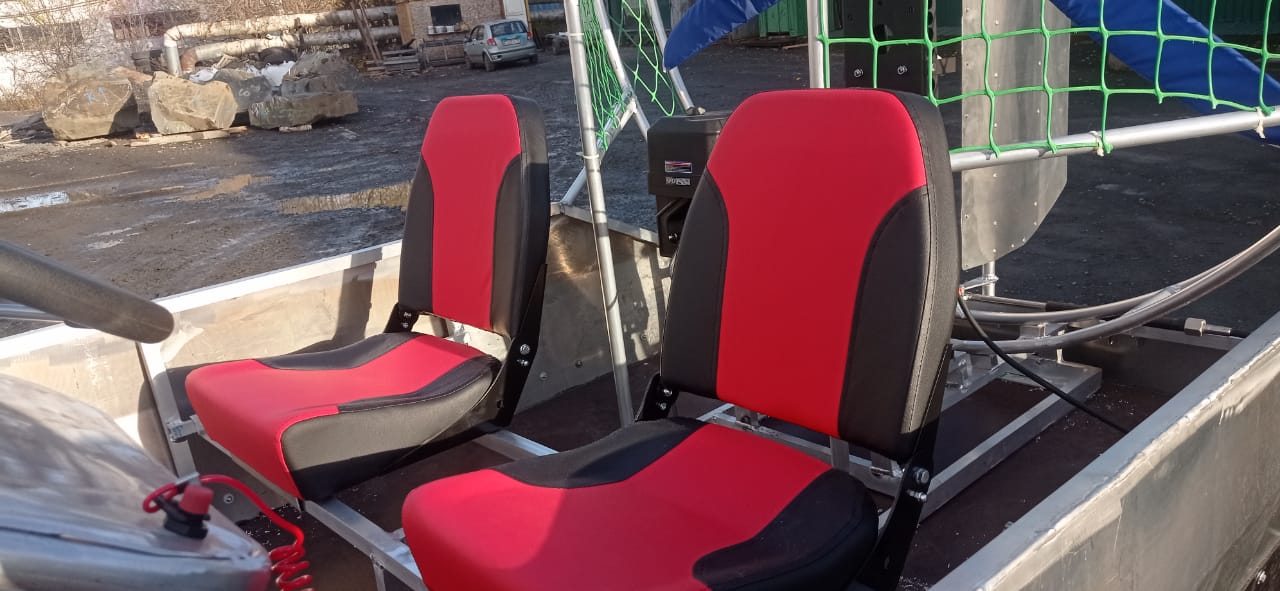 В стандартную комплектацию входит двигатель Лифан 20 л.с., рулевое управление, аварийная чека и мягкие сиденья.